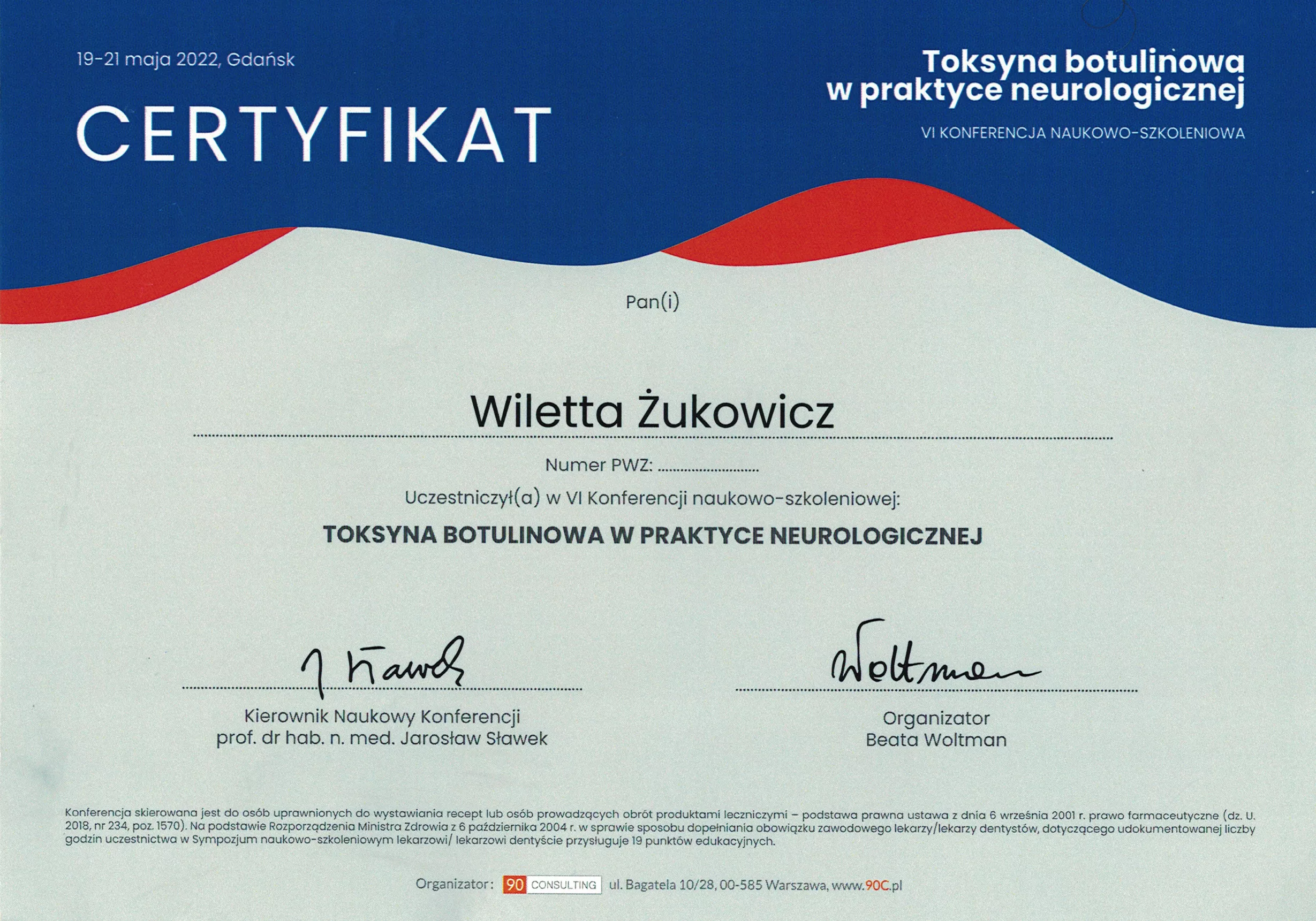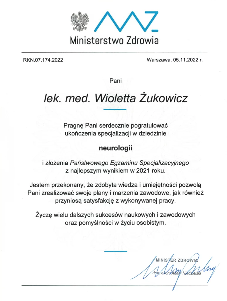 Ponadto jestem członkiem Polskiego Towarzystwa Neurologicznego oraz Polskiego Towarzystwa Bólów Głowy. Jestem certyfikowanym lekarzem neurologiem z doświadczeniem w obszarze nowoczesnych metod leczenia migreny i innych bólów głowy.